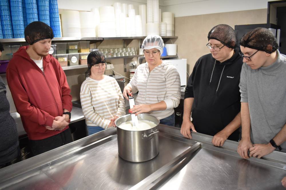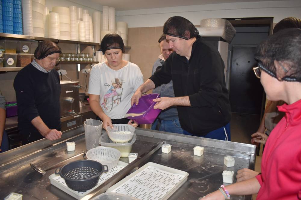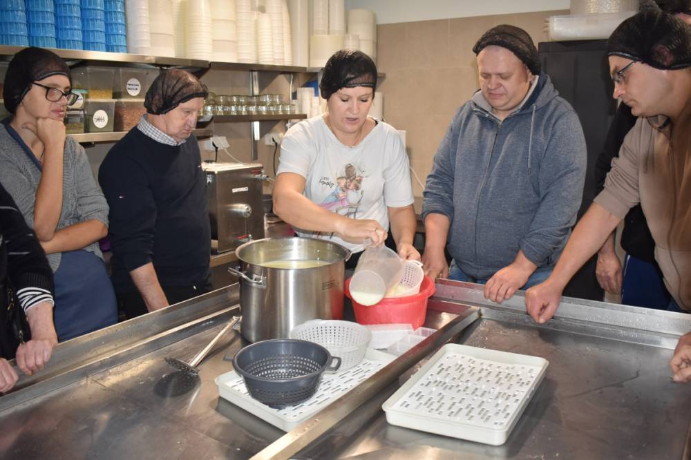 13 i 20 października odbyły się warsztaty w przydomowej Serowarnia Moniser, którą prowadzi Pani Monika Przychodzka. To właśnie pod jej okiem nasi Uczestnicy mogli zapoznać się ze wszystkimi etapami powstawania sera podpuszczkowego. Otrzymali odzież ochronną i wspólnie z właścicielką rozpoczęli proces przygotowania sera, kroili skrzepy i odciągali ręcznie serwatkę. Na zakończenie każdy otrzymał własnoręcznie wykonany, przepyszny serek. Serdecznie dziękujemy za możliwość skorzystania z tak kreatywnych warsztatów, mamy nadzieję, że wkrótce ponownie zawitamy do Serowarnia Moniser.