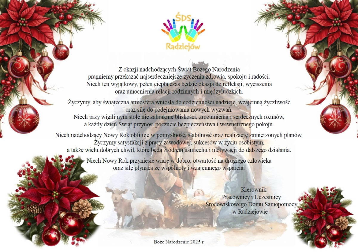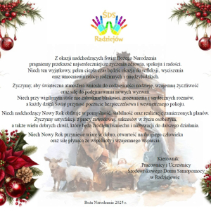 Życzenia Świąteczne i Noworoczne od Społeczności ŚDS w Radziejowie